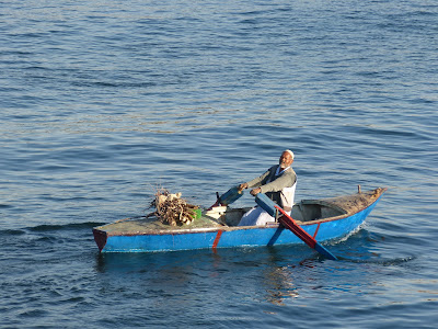 trafic est permanent : felouques qui transportent des cailloux,